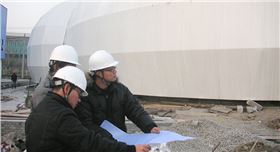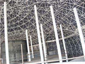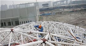 本球形網(wǎng)架工程桿件規(guī)格達到6000余種,網(wǎng)架螺栓球規(guī)格達到2000多種,這樣的規(guī)格容量利用人力根本無法計算,甚至利用計算機的傳統(tǒng)方法也無法滿足要求。我司設(shè)計人員利用VB軟件編制實用程序與MSGS8.0軟件(中國建研院網(wǎng)架計算軟件)接口,對MSGS8.0軟件計算的結(jié)果進行二次設(shè)計,桿件按及螺栓球按順序重新編號。電子版及打印稿同時送達車間、檢測及現(xiàn)場。工程進行過程中,東吳鋼構(gòu)成立一個由設(shè)計人員、車間主任、項目經(jīng)理、質(zhì)檢人員組成的精英團隊,全程利用計算機對設(shè)計、交底、加工、運輸、安裝工作進行實時監(jiān)控,現(xiàn)場發(fā)現(xiàn)問題現(xiàn)場解決。以設(shè)計圖紙作為標(biāo)準(zhǔn),對每天發(fā)生的工作進行比對,比對結(jié)果全部存入計算機,不讓前道工序的錯誤流入下道工序。網(wǎng)架加工過程采取五級檢驗制度,包括每一級工序的自檢、后道工序?qū)η暗拦ば虻膹?fù)檢、成品后的兩道復(fù)檢、進場前的再次復(fù)檢。包裝運輸采用有順序的堆料方式,每捆編號采用跟蹤掛牌方式,包裝資料及加工檢測資料以數(shù)據(jù)庫的形式移交到現(xiàn)場。最終東吳鋼構(gòu)通過自己的努力及運用完善的網(wǎng)架設(shè)計及管理手段圓滿的完成了任務(wù)!
