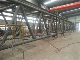 本次東吳鋼構(gòu)加工的為50m大型過(guò)路桁架,所有工作包括:放樣、相貫線、焊接都由工人完成。