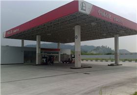 網(wǎng)架結(jié)構(gòu)加油站的造型通常十分規(guī)整簡單。方正的頂棚與立柱構(gòu)成了結(jié)構(gòu)的主體。頂棚的周邊一般采用鋁塑板、噴繪布裝飾,上平面用一般用彩鋼板遮蓋,下平面設(shè)置照明器具,可以不做天花板,如用天花板,一般采用鋁扣板。網(wǎng)架結(jié)構(gòu)的用鋼量小,零件都是工廠預(yù)制件,安裝方便,施工時間很短。非常適合工期緊,需要短時間投入運營的加油站工程。