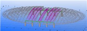 圖二,網(wǎng)架疊合模型(紫色為新建網(wǎng)架)