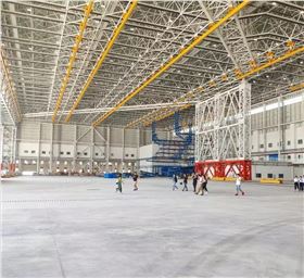 機(jī)庫(kù)屋蓋還首次采用網(wǎng)架鋼結(jié)構(gòu)結(jié)合斜桁架模式(為國(guó)內(nèi)首次),比傳統(tǒng)設(shè)計(jì)節(jié)約鋼材2000噸,縮短工期90天,降低造價(jià)1億元。
