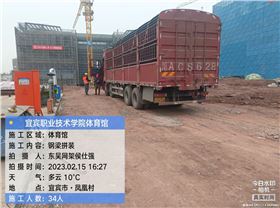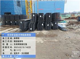 2023年2月16日,宜賓職業(yè)技術(shù)學院體育館項目施工現(xiàn)場傳來消息,4車鋼筋桁架樓承板已全部到達現(xiàn)場,現(xiàn)場施工人員已全部卸貨清點完畢,隨時準備進行安裝。