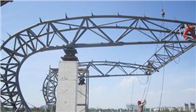 本鋼結(jié)構(gòu)工程不是一個單體工程,而是一批鋼結(jié)構(gòu)工程的組合。包括主看臺管桁架膜結(jié)構(gòu),副看臺為異形鋼結(jié)構(gòu)(管桁架)+鋁鎂錳板屋面,室內(nèi)訓(xùn)練館網(wǎng)架結(jié)構(gòu),培訓(xùn)中心球形網(wǎng)架結(jié)構(gòu),西大門造型鋼結(jié)構(gòu),培訓(xùn)中心框架結(jié)構(gòu)(局部鋼結(jié)構(gòu)夾層),培訓(xùn)中心大型鋼結(jié)構(gòu)旋轉(zhuǎn)樓梯,培訓(xùn)中心大型鋼結(jié)構(gòu)玻璃雨棚等。特別說明的是: