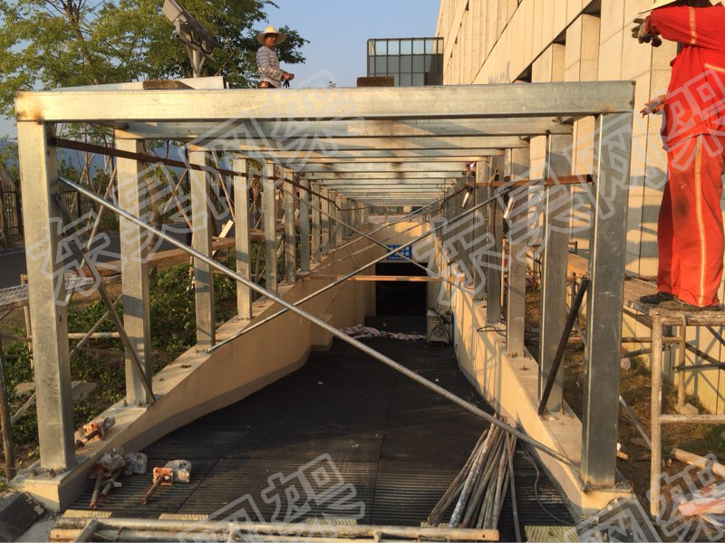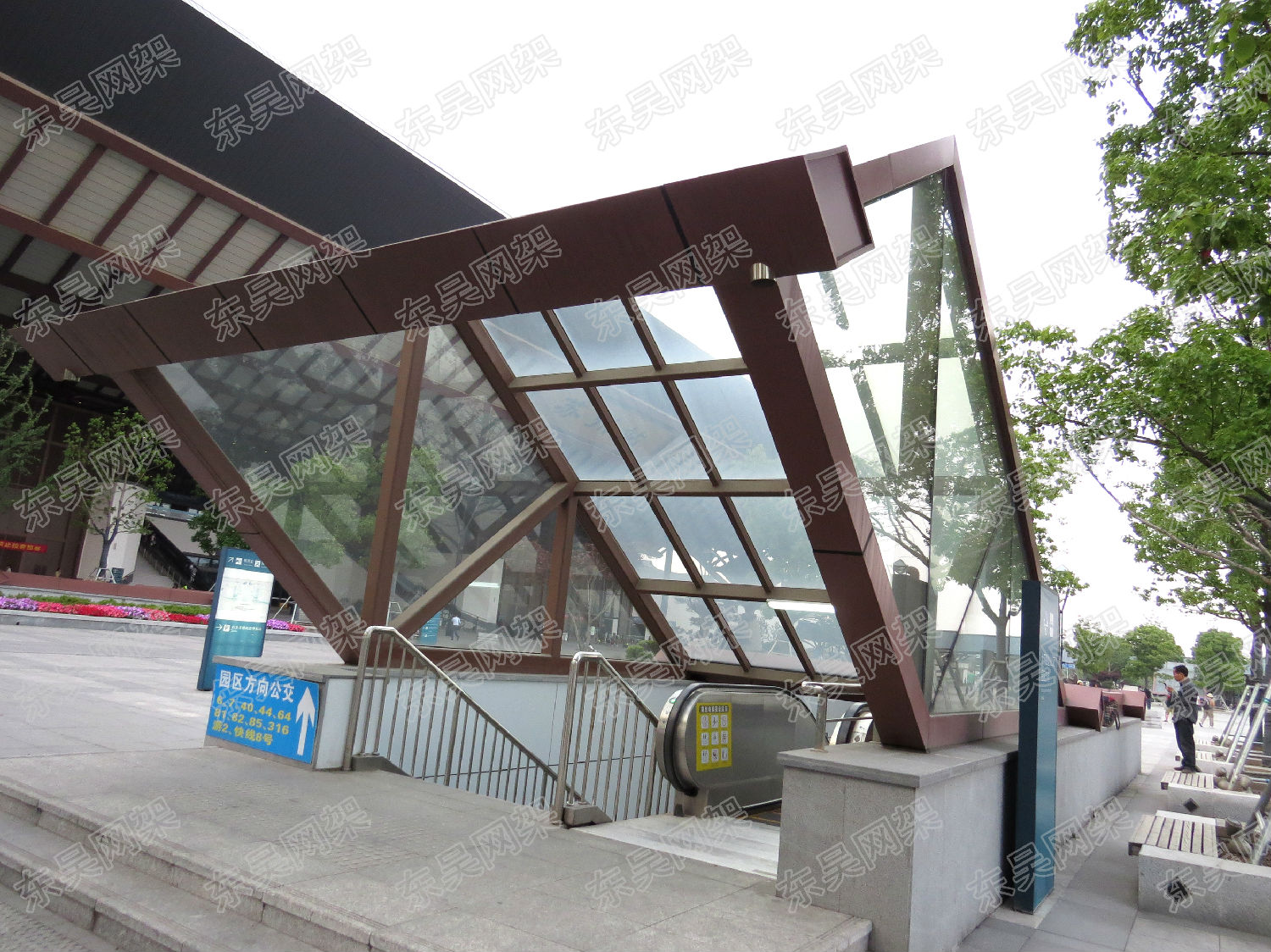 廣場地下車庫出入口玻璃雨棚除有以上的實用功能外,還有最重要的是裝飾功能。利用鋼結構材料可以做出很多造型,在加上玻璃的質感,會給老百姓耳目一新的感覺,可以增加某個建筑的地標感!