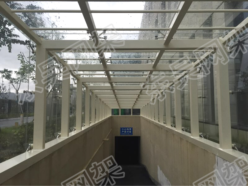 廣場地下車庫出入口玻璃雨棚主要作用是保護您的愛車,同時保護人員進出免受雨淋及高空墜物。廣場地下車庫入口玻璃雨棚分成一下幾種:1:地下室汽車出入口玻璃雨棚,主要為小車進出服務。2:地下車庫自動扶梯出入口玻璃雨棚,為人服務,駕乘人員從自動扶梯進出的通道,同時保護自動扶梯及人員免受雨淋及墜物。3:自行車及電動車出入口玻璃雨棚,專門為自行車及電動車進出服務,一般寬度較小。4:地下車庫樓梯玻璃雨棚,專為駕乘人員從樓梯進出的通道。