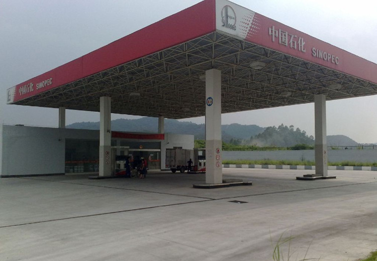 網(wǎng)架結(jié)構(gòu)加油站的造型通常十分規(guī)整簡(jiǎn)單。方正的頂棚與立柱構(gòu)成了結(jié)構(gòu)的主體。頂棚的周邊一般采用鋁塑板、噴繪布裝飾,上平面用一般用彩鋼板遮蓋,下平面設(shè)置照明器具,可以不做天花板,如用天花板,一般采用鋁扣板。網(wǎng)架結(jié)構(gòu)的用鋼量小,零件都是工廠預(yù)制件,安裝方便,施工時(shí)間很短。非常適合工期緊,需要短時(shí)間投入運(yùn)營(yíng)的加油站工程。
