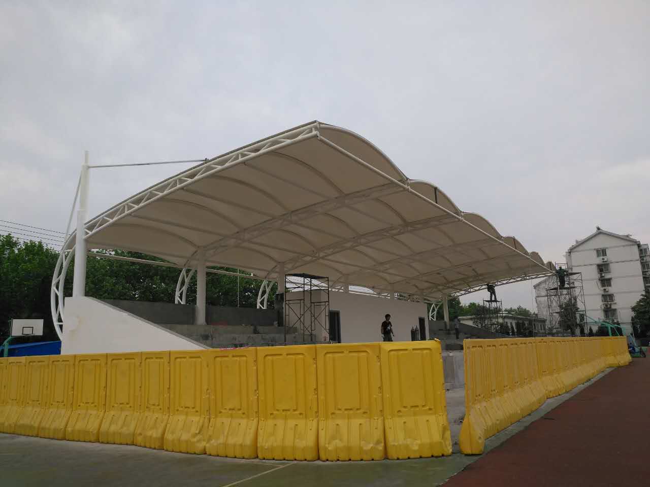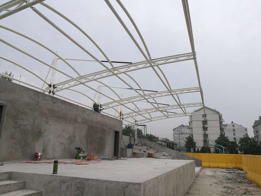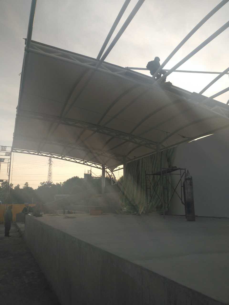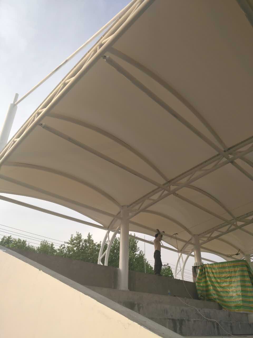 南京大廠體育看臺(tái)膜結(jié)構(gòu)是東吳網(wǎng)架2017年接到的第一個(gè)為體育場(chǎng)建造膜結(jié)構(gòu)的工程,簽訂合同以后有序安排車間對(duì)桿件進(jìn)行加工,組織工人進(jìn)場(chǎng)安裝,各項(xiàng)事宜安排的井然有序,為業(yè)主減少了時(shí)間成本,確保高效交付。