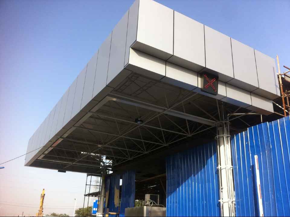 有很多高速公路收費站都采用網(wǎng)架結(jié)構(gòu),外面裝飾板包裹,經(jīng)過多年來得風吹雨打,難免會產(chǎn)生銹蝕及外觀的影響,為保證過路車輛的安全及美觀性,許多收費站進行了改造。