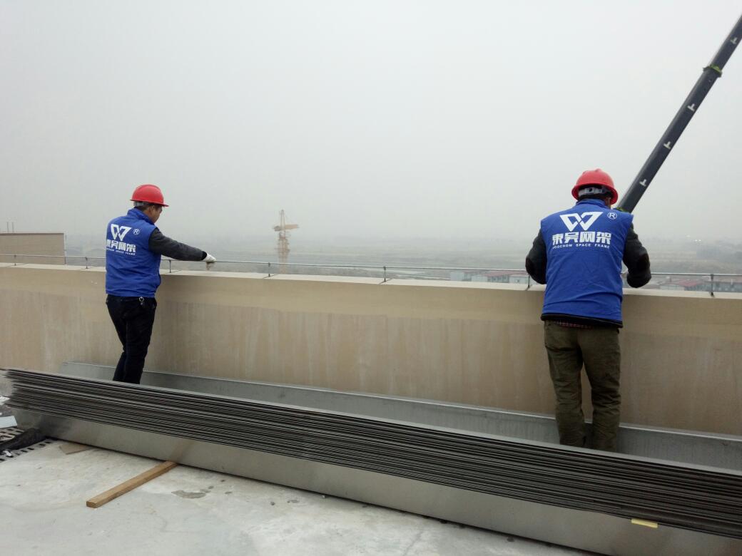 嘉興世貿(mào)商辦樓網(wǎng)架部分圓滿(mǎn)完工,屋面檁條開(kāi)始安裝。東吳網(wǎng)架使用現(xiàn)代化互聯(lián)網(wǎng)+施工現(xiàn)場(chǎng)管理方法,即使管理人員不在現(xiàn)場(chǎng)能實(shí)時(shí)獲取施工進(jìn)度,人員安全等信息,高效完成網(wǎng)架安裝工作。