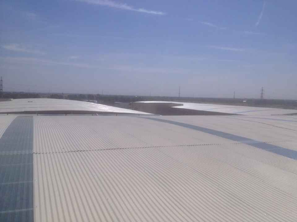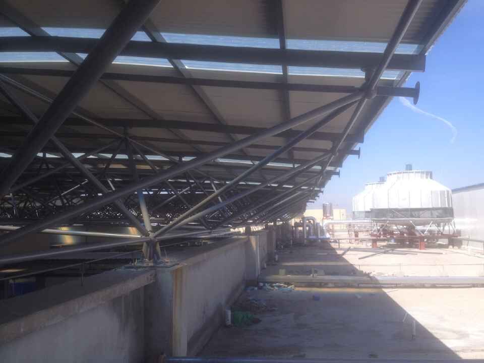 國際商貿(mào)城屋頂頂由5個(gè)小的弧形網(wǎng)架構(gòu)成,最終形成H型大網(wǎng)架屋面,該網(wǎng)架結(jié)構(gòu)屋面原設(shè)計(jì)采用0.5mm彩鋼板,甲方提出屋面須有較好的隔音效果,東吳鋼結(jié)構(gòu)秉持著站在為業(yè)主考慮的角度,提出將彩鋼瓦變?yōu)?mm厚的樹脂板,不僅能到達(dá)預(yù)期效果,造價(jià)也在業(yè)主接受范圍內(nèi)。