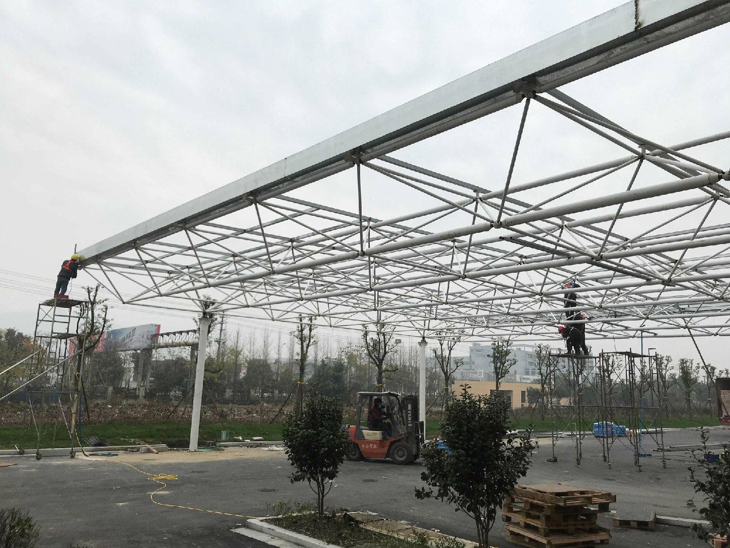 2.空間網(wǎng)架結(jié)構(gòu)不得在六級及六級以上的風(fēng)力下進(jìn)行安裝。