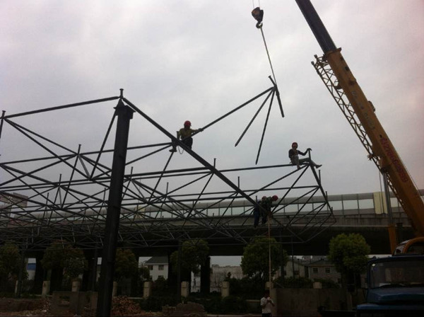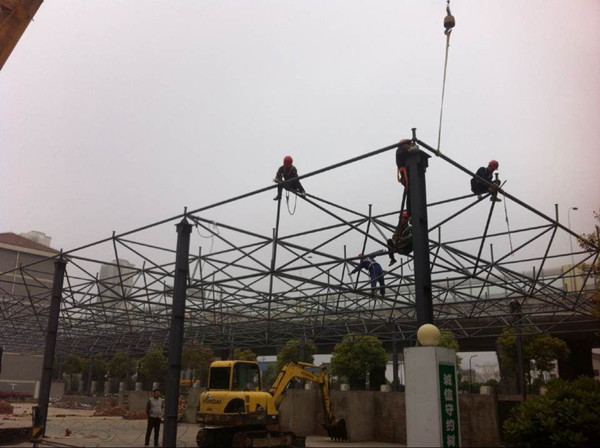 與傳統(tǒng)平面結(jié)構(gòu)相比,網(wǎng)架結(jié)構(gòu)輕巧,能覆蓋各種形狀的平面,又可設(shè)計成各種各樣的體形,造型美觀大方。網(wǎng)架結(jié)構(gòu)的構(gòu)件,其尺寸和形狀大量相同,可在工廠成批生產(chǎn),且質(zhì)量好、效率高、同時不與土建爭場地,因而現(xiàn)場工作量小,工期縮短,建設(shè)速度快。
