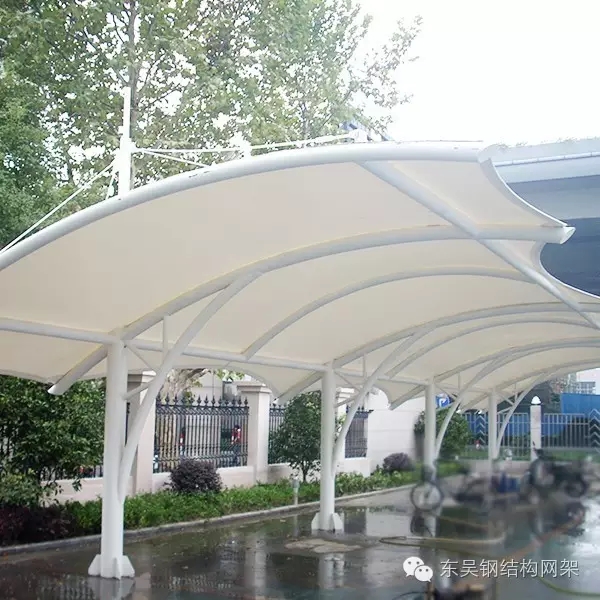 3.2 膜結(jié)構(gòu)車(chē)棚的主要功能就是遮陽(yáng)(夏天防止車(chē)輛暴曬),其次是遮風(fēng)擋雨,最后才是美觀。膜結(jié)構(gòu)車(chē)棚的造價(jià)主要包括基礎(chǔ)、鋼結(jié)構(gòu)和膜結(jié)構(gòu)的造價(jià),以及后期的維護(hù)費(fèi)用。合理降低造價(jià),就是提高性價(jià)比。