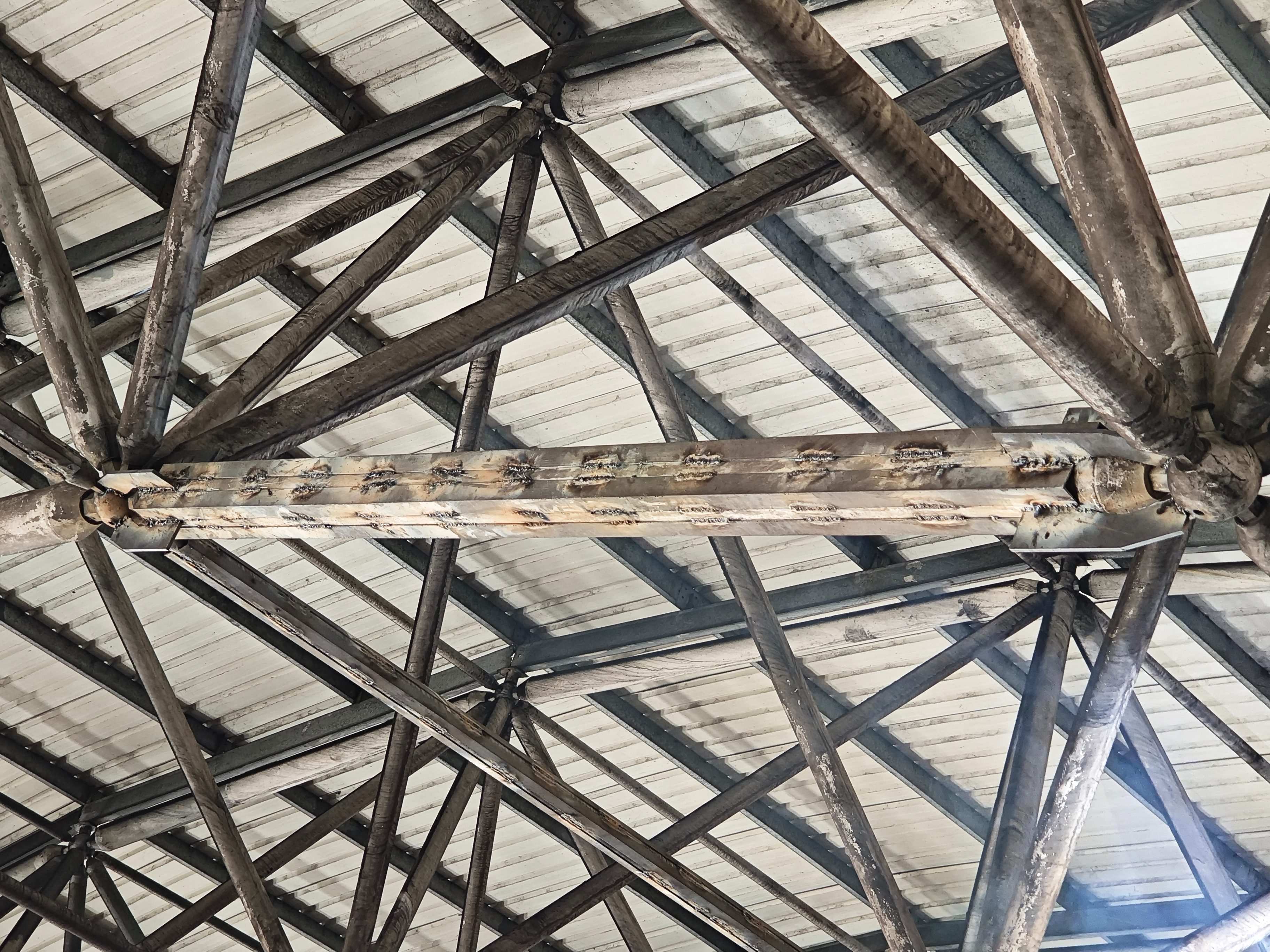 網(wǎng)架的核心受力點是節(jié)點,很多人加固時只盯著桿件,卻忽略了節(jié)點處理。比如有的工人焊接節(jié)點時,為了省時間,焊縫高度不夠,或者沒做探傷檢測,看著焊上了,實際是“虛焊”;還有的節(jié)點生銹后,只簡單擦了擦就涂漆,銹跡沒清干凈,涂料根本粘不住,后期還是會腐蝕。之前有個體育館網(wǎng)架加固,就是節(jié)點焊縫沒達標,舉辦活動時荷載一增加,節(jié)點直接開裂,幸好發(fā)現(xiàn)及時沒出大事。所以節(jié)點加固時,焊縫高度必須符合設(shè)計要求,焊完后要做磁粉探傷,生銹的節(jié)點得用砂紙打磨到露出金屬本色,再涂防銹漆和面漆,一步都不能少。