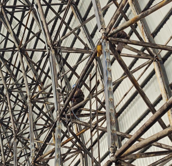 對于網(wǎng)架的整體結(jié)構(gòu)布置,需詳細測繪網(wǎng)架的平面尺寸、網(wǎng)格劃分、桿件的空間布置以及支座形式和位置等信息,檢查是否與原設計圖紙一致,查看是否存在因改造、維修等原因?qū)е碌慕Y(jié)構(gòu)布局不合理現(xiàn)象。精確測量各桿件的截面尺寸,使用游標卡尺、超聲波測厚儀等專業(yè)測量工具,對桿件的直徑、壁厚等關鍵尺寸進行多點測量,以確定桿件是否存在因腐蝕、磨損等原因?qū)е碌慕孛嫦魅跚闆r。對于螺栓球節(jié)點網(wǎng)架,除了測量螺栓球節(jié)點直徑外,還要重點檢查節(jié)點焊縫質(zhì)量,采用超聲波探傷儀對焊縫進行無損檢測,查看是否存在裂紋、氣孔、未焊透等焊接缺陷;同時,仔細檢查高強螺栓的擰緊。